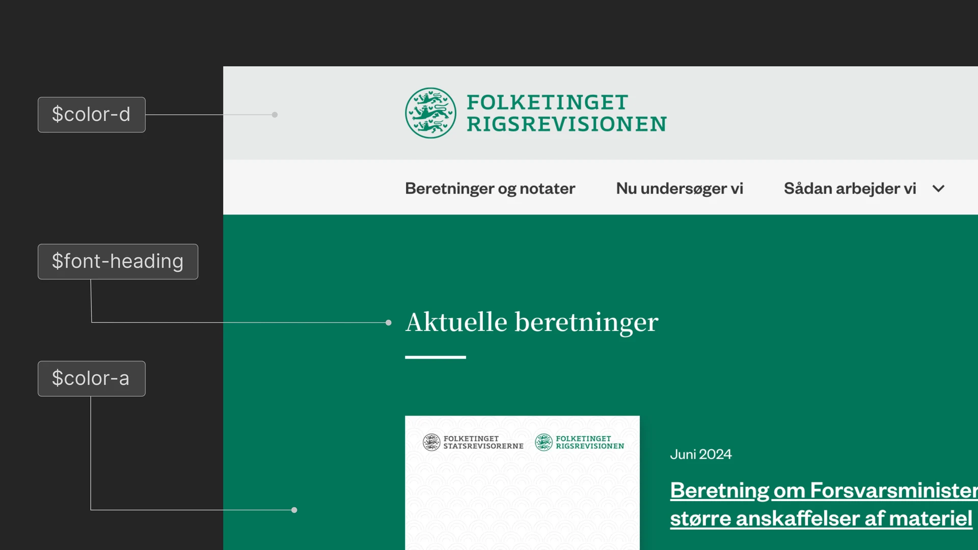 Designsystemet er konfigurerbart og tilpasses organisationers unikke udtryk og visuelle identitet gennem justeringer af farver, typografi, former og meget mere.